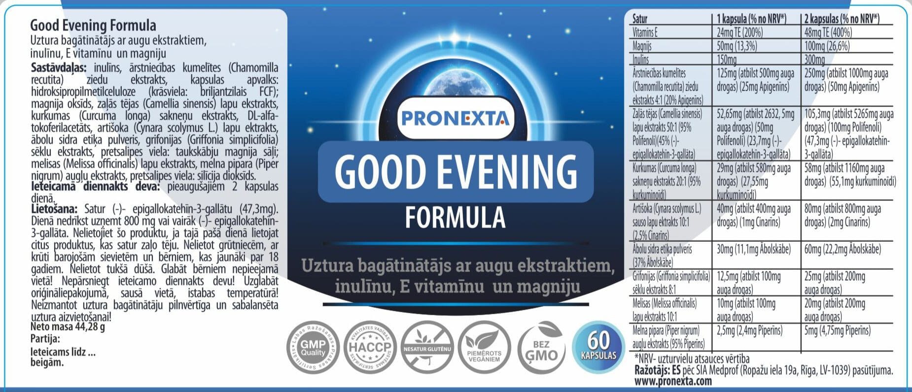 PRONEXTA Good Evening formula atbilst augstākajiem kvalitātes standartiem: